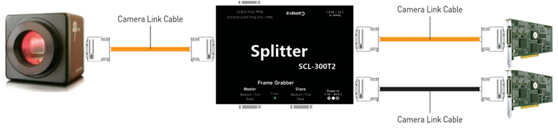 > Camera Link SplitterSCL Splitter Series는 Camera – Frame Grabber 간의 신호분배, 증폭 및 전송거리 연장을 목적으로